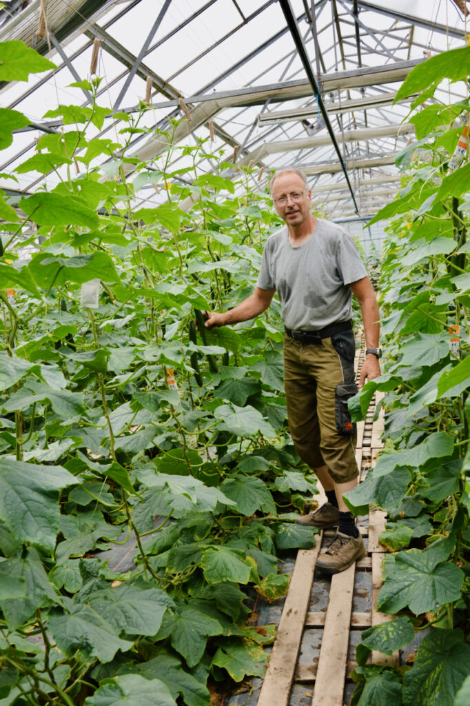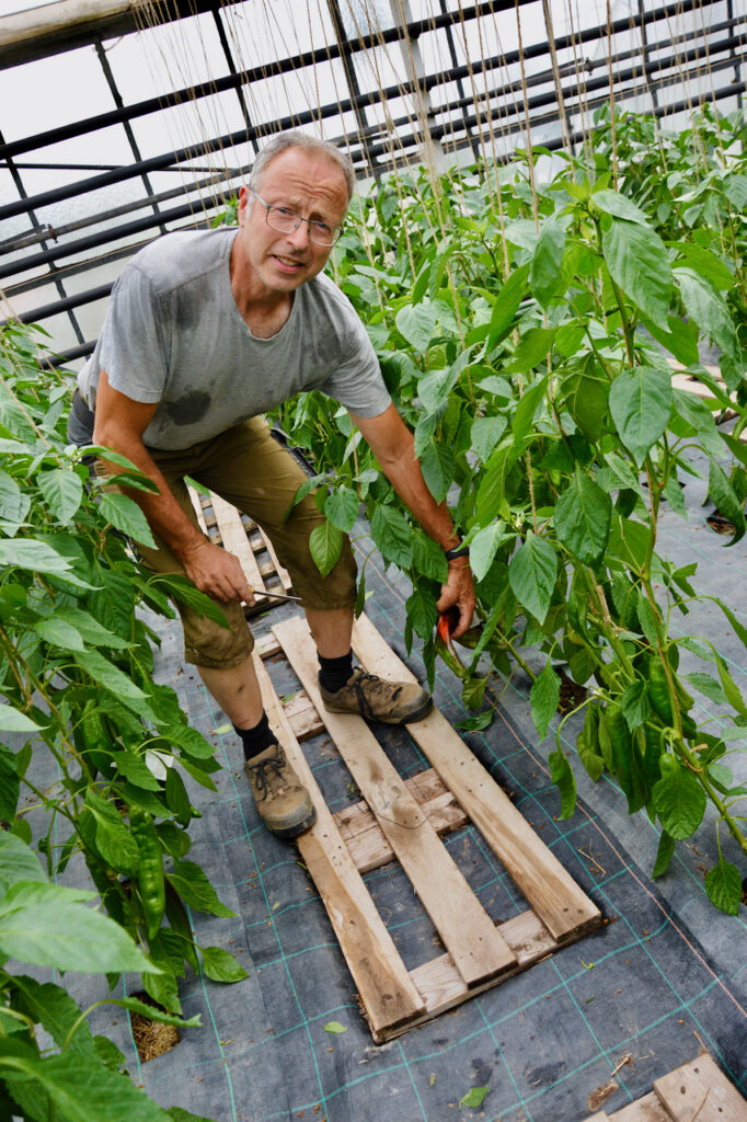 Der Anbau von Gemüse, Salat, Gurken, Paprika, Kräutern usw. ist harte und körperlich anstrengende Arbeit, besonders im Bioanbau. Ganz gleich, wie das Wetter auch sein mag, Andreas Ohlig und sein Team müssen ran.